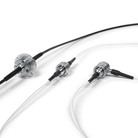 We also supply combinations of fiber optic rotary joints with radio frequency (RF) rotary joints, contactless power transmission modules, slip rings, multi-media joints and contactless data transmission.