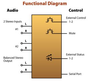 - Audio switching via sealed relays utilizing 2-form-C bifurcated - crossbar silver alloy with gold overlay contacts.