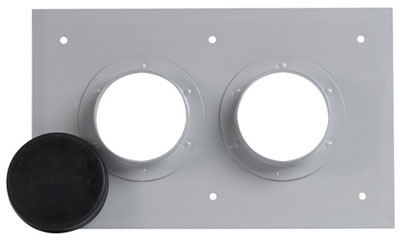 Plate with one or more 4 inch (102mm) holes. Weatherproof sealing caps included. Use with the corresponding size rubber cable boot (sold separately).