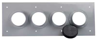 Plate with one or more 4 inch (102mm) holes. Weatherproof sealing caps included. Use with the corresponding size rubber cable boot (sold separately).