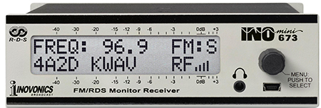 A sensitive and selective off-air receiver for standard analog-FM broadcasts, it has application as a ‘confidence monitor’ or as a rebroadcast receiver in FM translator service. The 673 decodes and displays the most important data from RDS/RBDS data groups as well.