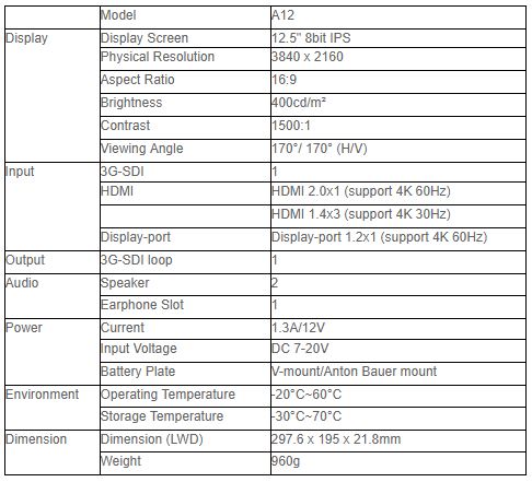 SPECIAL - WHILE STOCK LASTS! Lilliput A12 - 4K 12.5 Inch Broadcast and Production Monitor