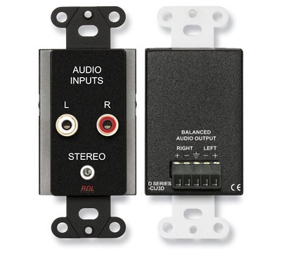 The DB-CIJ3D is the ideal choice in installations requiring stereo unbalanced line level audio sources to feed stereo balanced (or unbalanced) audio lines.