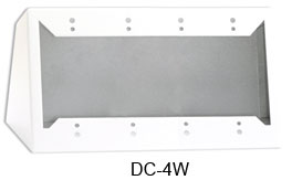 The DC-1, 2, 3 and 4 desktop chassis hold one, two, three or four Decora style products, including RDL remote controls and connector plates. Installation is facilitated using the included mounting plate, which allows the chassis to mount to a tabletop or on a vertical surface such as a cabinet or wall. The plate is secured in position, then the chassis slides into a locked position where it is secured with screws. Model numbers with a suffix "W" are white; with a suffix "G" are gray to complement RDL stainless steel remote controls and plates. All DC- boxes are constructed from welded steel with a high quality powder coated finish.