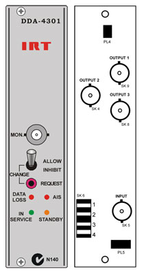 The DDA-4301 incorporates a protection facility for switching to signals from a standby module when a fault is detected.