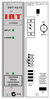 The IRT DDT-4210 transmitter and DDR-4211 receiver are modules designed principally for use as a 270 Mb/s SMPTE/EBU serial digital video fibre optic transmission link, using 9/125µm single mode fibre, with optical paths losses up to 31dB.