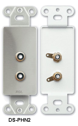 Dual RCA Jacks on Decora Wall Plate - Solder type.