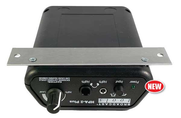 The Broadcast Tools MP-S Under mounting plate is designed to mount a HPA-2 Plus or AHR-1 Plus headphone amplifier securely under a table or desktop.