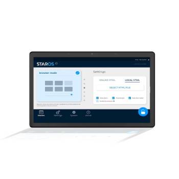 STAROS, pre-installed on Glory Star Android devices, is a secure kiosk software that locks devices into dedicated single-app or multi-app kiosk modes. It offers app lockdown, e-commerce screensavers, and integrates with Star Control for centralized device management.