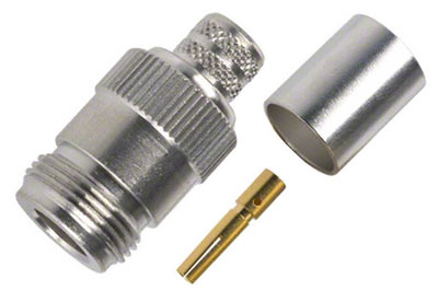 N-type Socket Connector, gold crimp or solder centre pin, crimp outer ferrule.