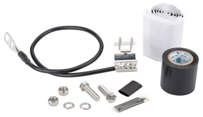 A well designed system uses grounding kits to provide a bond between the Coaxial Feeder / Elliptical Waveguide and the tower/earth ground system. One grounding kit is recommended at tower top, tower bottom, at 60 M intervals (where applicable), and at the entrance to the equipment shelter.