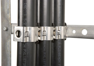 Andrews Commscope SSH-158 Snap-in hangers provide a quick and easy attachment in all types of weather. The hangers snap directly into holes in the tower support members. Installation time and costs are substantially reduced. These hangers feature cable gripping tabs to prevent cable slippage, and are constructed of heavy gauge stainless steel for high strength and excellent corrosion resistance.