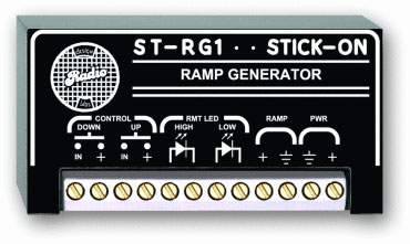The ST-RG1 is a digitally generated 0 to 10 volt Ramp Generator which provides the ideal interface for audio volume control from multiple points with the ST-VCA2. Any number of Up and Down buttons may be connected to the ST-RG1. Sufficient drive is provided from the ST-RG1 to control up to six ST-VCA2's.