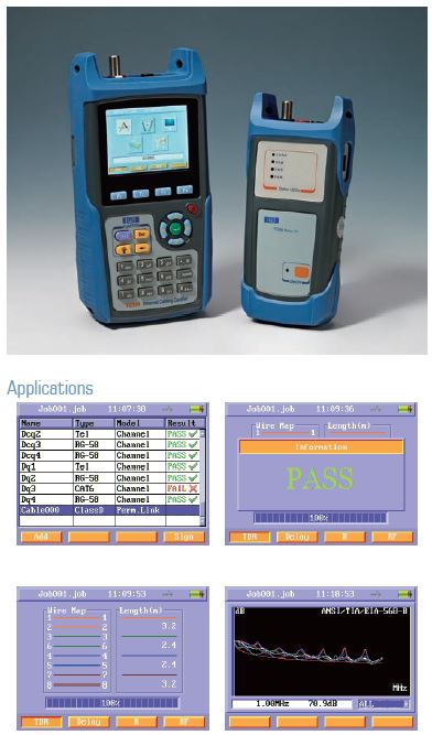 Designed for Ethernet systems, TC500 measures the speed and performance on CAT3, CAT5e and CAT6 cables according to ANSI/TIA/EIA-568-B and ISO/IEC 11801 to ensure the cable qualification.