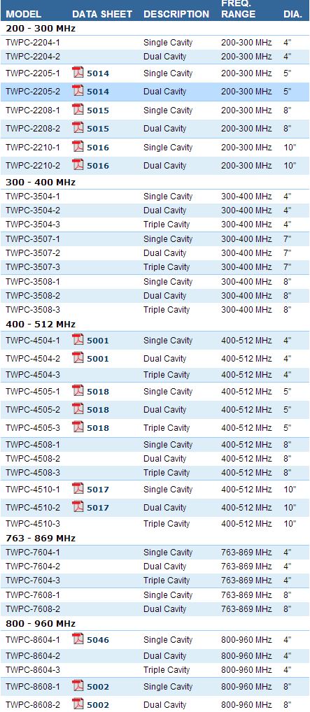 BANDPASS CAVITIES WITH ADJUSTABLE COUPLING 200-960 MHz