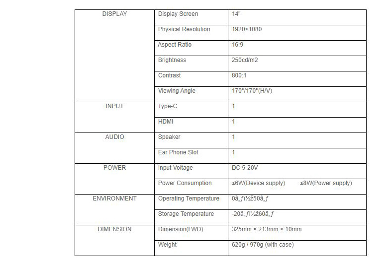 Lilliput 14" USB type-c monitor, portable USB type-c input, 4K HDMI input