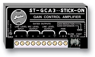 The ST-GCA3 constantly adjusts for changes in input levels, bringing up low levels, and reducing gain for high levels. The audio level is constantly adjusted to maintain the correct output. The AGC adjustment rate is switch-selectable. Making audio levels uniform and consistent improves the performance of nearly any type of audio system, and the ST-GCA3 SLOW mode is ideal for leveling music sources. The FAST setting of the ST-GCA3 makes it ideal for use in systems prone to loud bursts of audio, and inconsistent levels which must be constantly and quickly corrected. In paging systems, intercom systems, and mic mixing applications where intelligibility is a must the ST-GCA3 FAST mode can be the key to optimum performance.