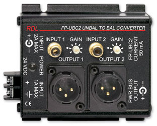 The FP-UBC2 is the ideal choice for connectorized conversion from unbalanced to balanced audio. This module features two identical channels. Gold plated phono jacks are utilized for each unbalanced input channel. Each output is balanced, connected through an XLR jack. A gain trim potentiometer is provided for each channel.