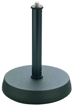 Sound-absorbing cast-iron base with black powder-coated screw-in rod, 3/8" thread.