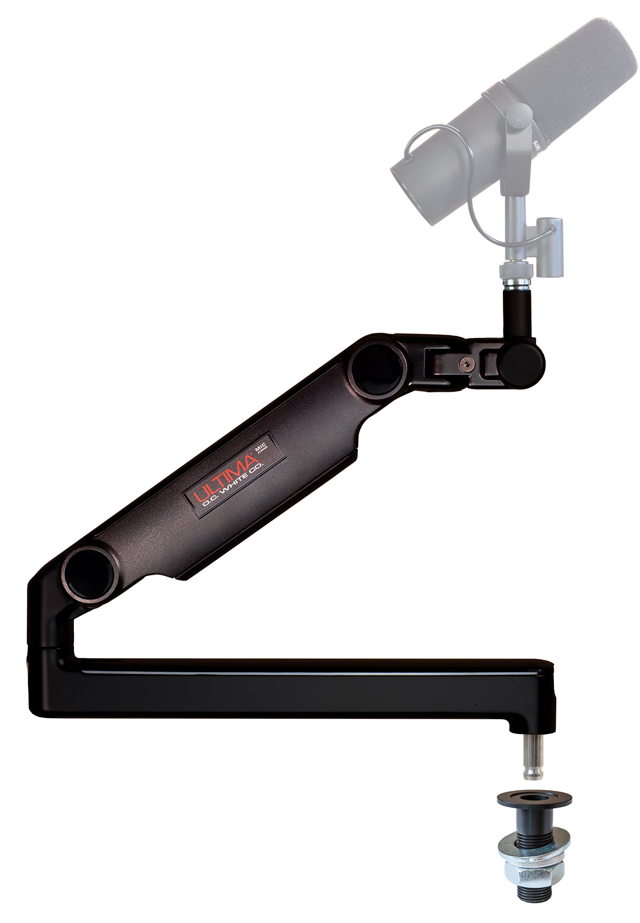 The ProBoom Ultima Gen2 Ultra Low Profile Adjustable Mic Boom with a 12” Fixed Horizontal Arm and Machined Table Bushing combines precision and durability. This microphone boom hugs the work surface. As a result, interviewers can see their guests and computer screens—not the mic arms. That’s what makes Ultima the world’s best mic and monitor arm.