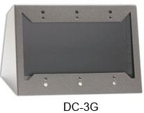 The DC-1, 2, 3 and 4 desktop chassis hold one, two, three or four Decora style products, including RDL remote controls and connector plates. Installation is facilitated using the included mounting plate, which allows the chassis to mount to a tabletop or on a vertical surface such as a cabinet or wall. The plate is secured in position, then the chassis slides into a locked position where it is secured with screws. Model numbers with a suffix "W" are white; with a suffix "G" are gray to complement RDL stainless steel remote controls and plates. All DC- boxes are constructed from welded steel with a high quality powder coated finish.