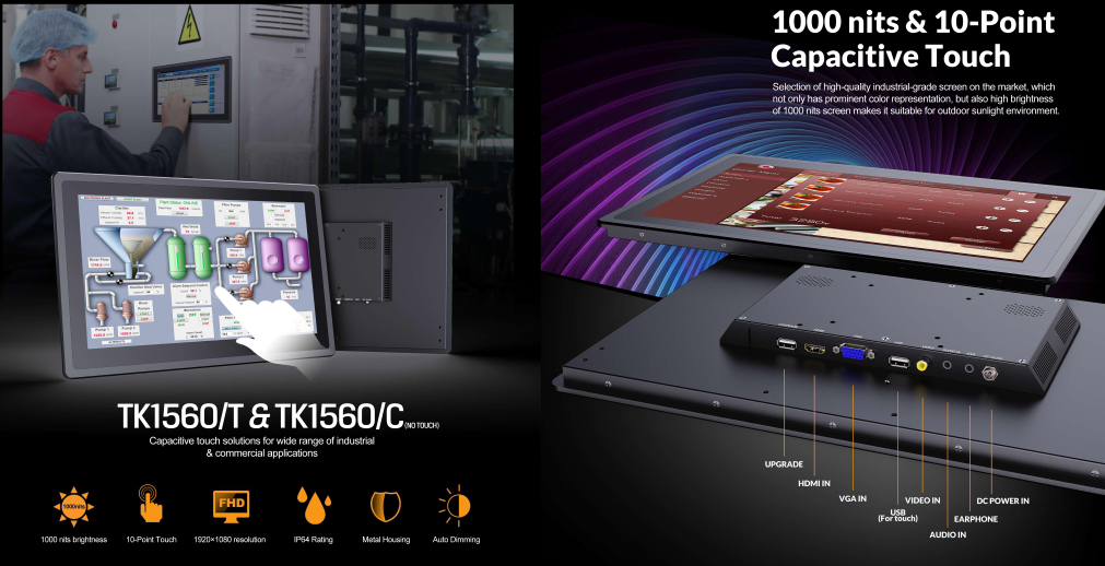 The Lilliput TK1560/C monitor is a 15.6" HDMI monitor - a bigger brother to the Lilliput TK1330 - and sports a very high brightness panel - rated at 1000cdm². With a solid metal frame, it's a rugged Lilliput monitor that can be used confidently outdoors or in industrial settings - particularly with its IP64 rating.