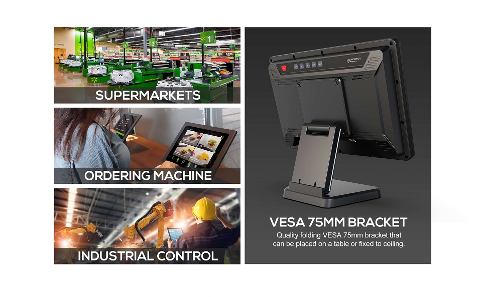 Its VESA 75mm bracket opens up a world of possibilities, from supermarket displays to ordering machines and industrial control panels. Mount the monitor securely in the most ergonomic and space-efficient manner, tailoring it to the unique requirements of your application.